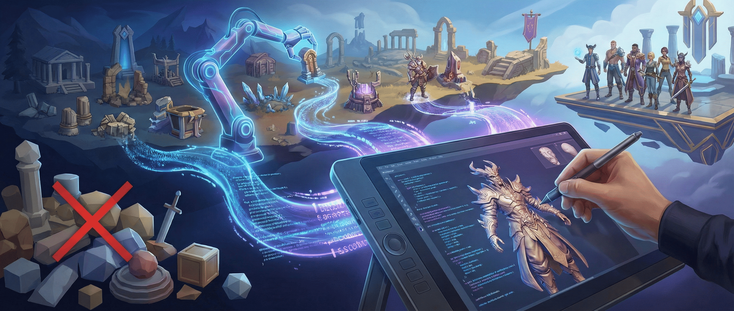 • Tier 1 (AI-assisted): Environmental assets, background elements, procedural generation